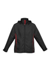 Grid Mesh Underarm Panels For Breathability Stow-away Hood With Print Feature Unique Sleeve Print Feature With Adjustable Cuff Two Side Zippered Pockets Contrast Panels, Piping And Inside Placket