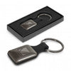 Opulent silicone and metal key ring with a gunmetal plated finish on both sides which can be laser engraved to a natural etch. It is beautifully presented in a black gift box.