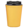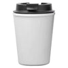 This 350ml (12oz) carry cup is a durable and reusable double wall cup that can be customised with your company logo. The cup is made with food grade (BPA free) plastic the bamboo cup is made from a blend of natural organic bamboo fiber and Polypropylene (renewable and biodegradable) environmentally friendly and recyclable. It features a easy screw lid with silicone drinking hole stopper to prevent leakage 100% leak proof. Double walled design keeps drinks hot or cold up to five times longer - ideal on the go at home or in the office. This product is not microwave safe and handwashing is recommended.