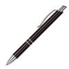 Matt anodized aluminium barrel with rings, solid black top, Metal clip, polished plated trims.