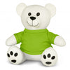 Soft cotton teddy bear with embroidered eyes and an optional polyester t-shirt which is available in eleven colours.