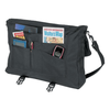600D polyester with heavy vinyl backing standard briefcase. 1 front zipped pouch on flap. Comfortable, adjustable, removable shoulder stripe with shaped shoulder pad, plus a short handle.