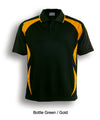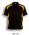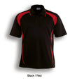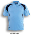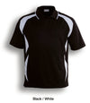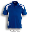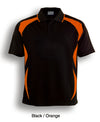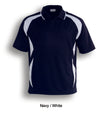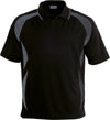 Short sleeve panel line polo with cover stitch and striped collar & cuffs 100% breezeway 160gsm polyester pique knit.