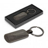 Metal key ring with a gunmetal plated finish on both sides which can be laser engraved to a natural etch. It is beautifully presented in a black gift box.